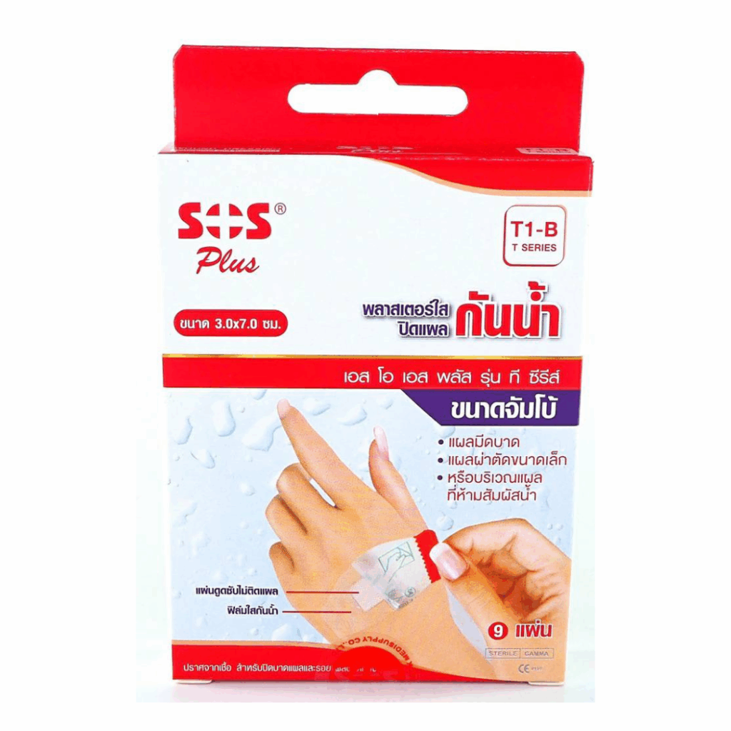 สินค้า, อุปกรณ์และเครื่องมือแพทย์พลาสเตอร์ใสปิดแผลกันน้ำ SOS Plus T1-B (3×7 cm.) 9 แผ่น/กล่อง สินค้า, อุปกรณ์และเครื่องมือแพทย์ / pjmedicalsolution พลาสเตอร์ใสปิดแผลกัน