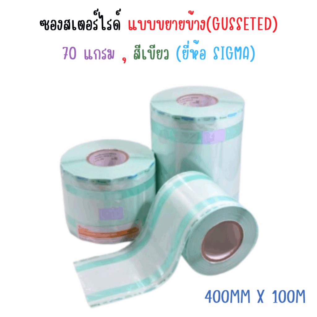 สินค้า, อุปกรณ์และเครื่องมือแพทย์ซองสเตอร์ไรด์ 70g สีเขียว ขยายข้าง (Gusseted) SIGMA สินค้า, อุปกรณ์และเครื่องมือแพทย์ / pjmedicalsolution ซองสเตอร์ไรด์ 70g สี