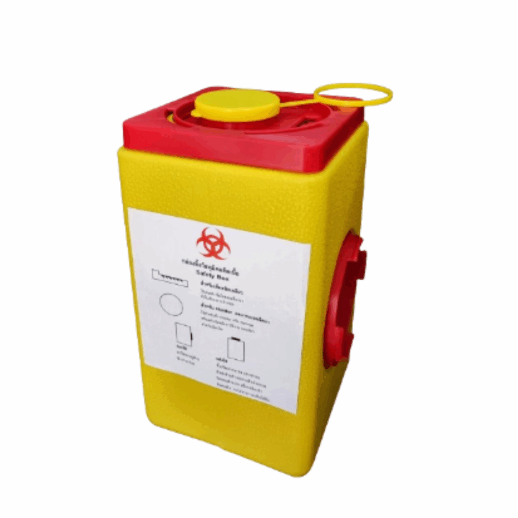 สินค้า, อุปกรณ์และเครื่องมือแพทย์กล่องทิ้งเข็มพลาสติก ขนาด 3.5 ลิตร ขนาด 5x5x9.5” ทรงสี่เหลี่ยม สีเหลือง สินค้า, อุปกรณ์และเครื่องมือแพทย์ / pjmedicalsolution กล่องทิ้งเข็มพลาสติก